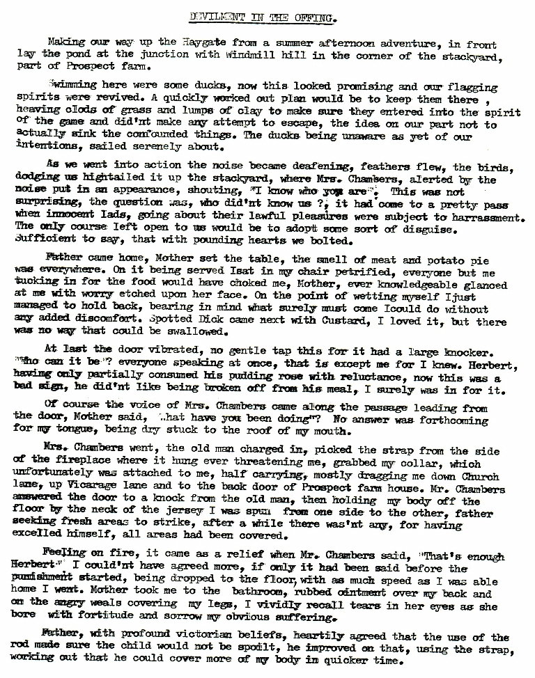 15 - Devilment in the Offing Another escapade for Harry and his pals - again leading to retribution. This time it was about ducks.