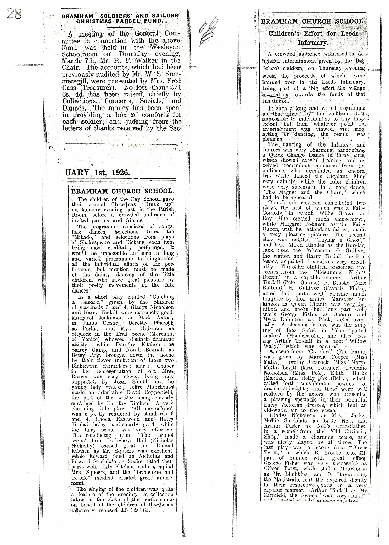 1. Harry was one of the performers praised in newspaper articles on the long and varied programme put on by the children before a crowded audience in the village hall in Christmas week 1925