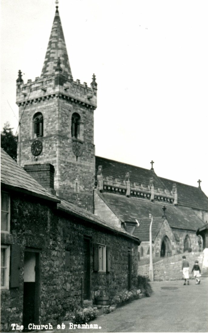 1. A view of the church in the early 20th century from the top of Low Way, showing the 3old cottages opposite the Village Hall