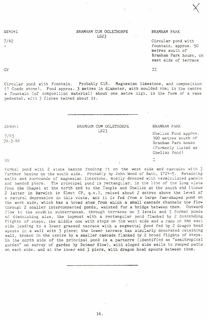 1. Architectural descriptions of the Grade II listed Circular Pond 50 metres south of the house and of the Grade I listed Obelisk Pond 300 metres south of the house.