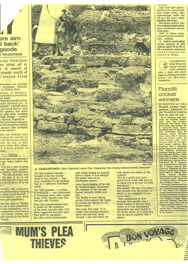 2. & 3. A Yorkshire Evening Post article dated 23 March 1968 relating how a government grant of £8260 will be used to restore the park's elaborate system of water cascades and ornamental ponds.