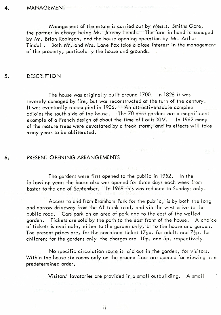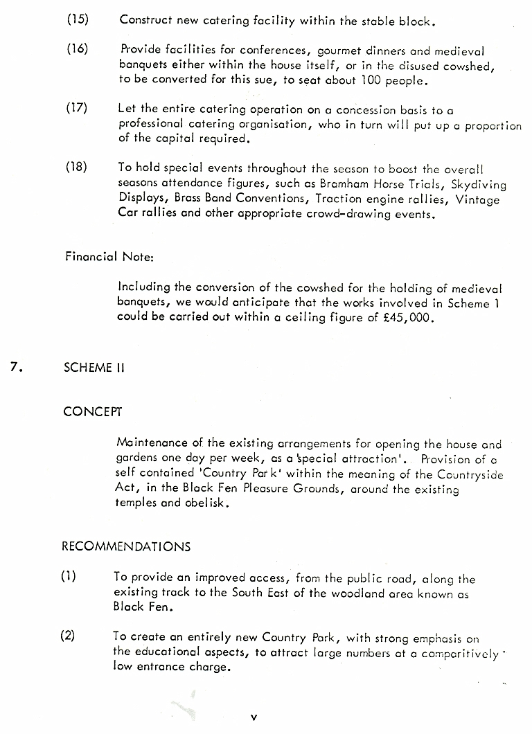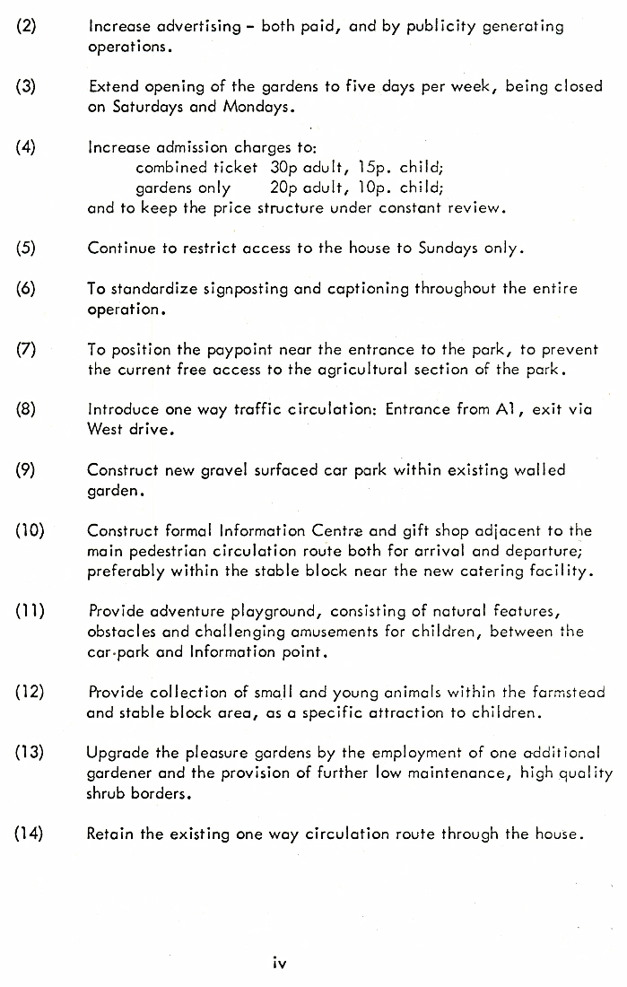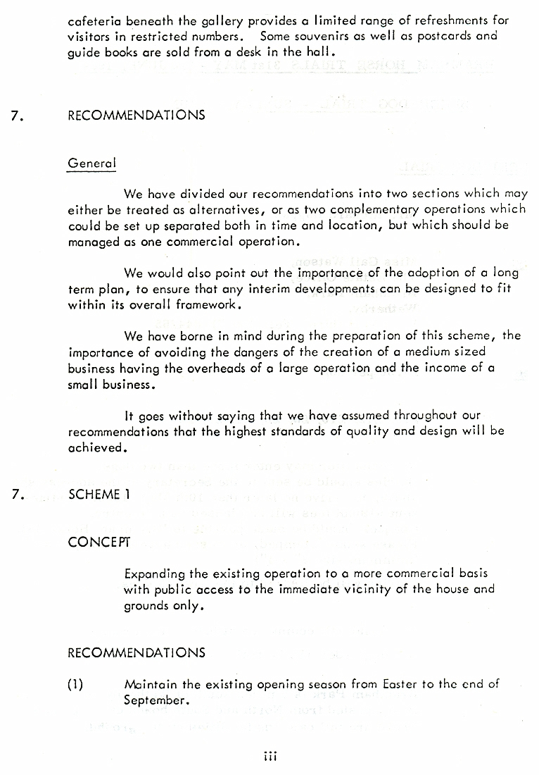 1. - 9. Report by Strutt and Parker, Leisure Management and Consultancy, dated October 1972. The gardens were first opened to the public in 1952 and the house had also been opened for limited periods but the current report offered two alternative proposals to make future opening not only self financing but also offering a profit to the estate.