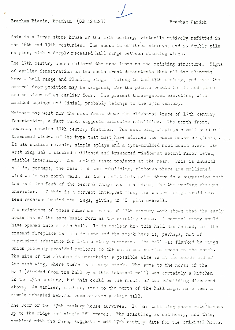 Description of 23-H Bramham Biggin and Bramham College