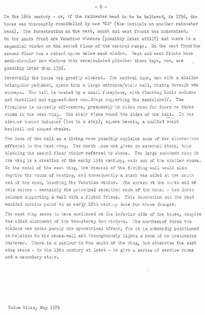 1. -3 . A report by the Royal Commission on the Historical Monuments of England by Colum Giles, dated May 1979 giving details of this 17th century building.