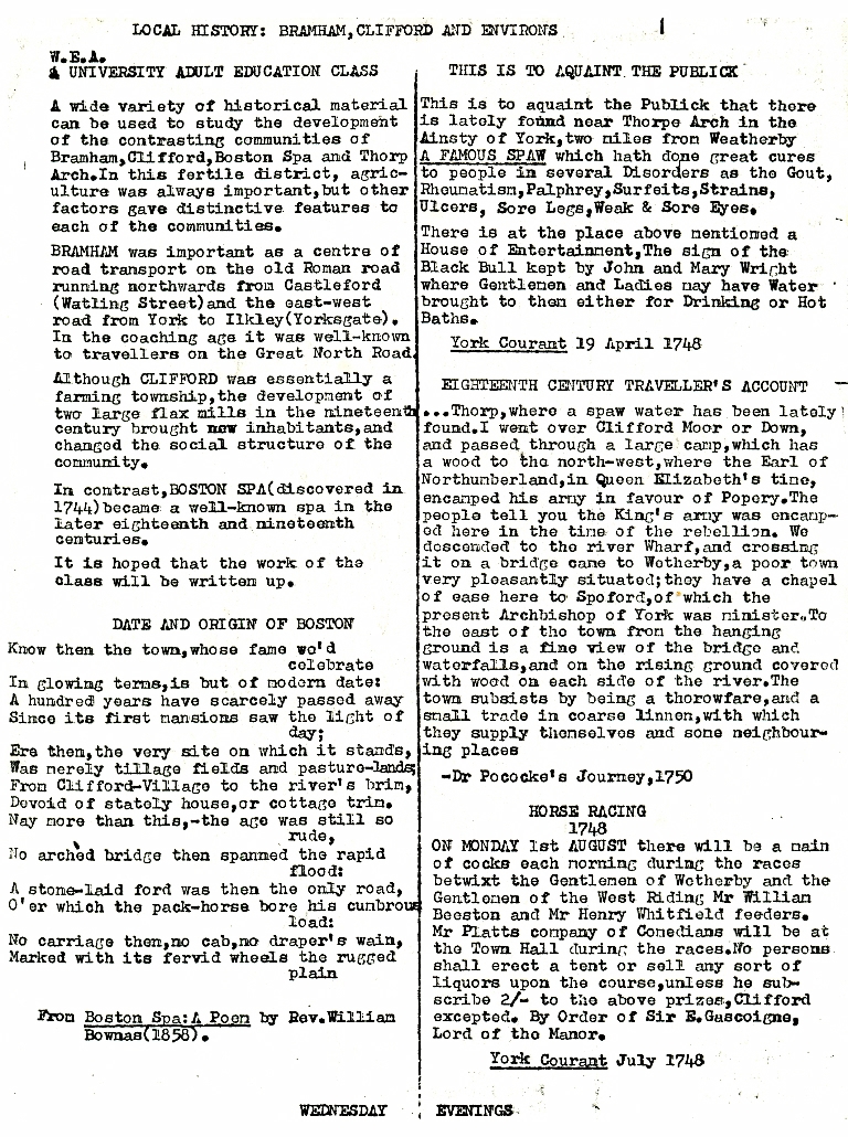 1. Miscellaneous extracts written in the 18th and 19th centuries about Bramham, Clifford and environs.
