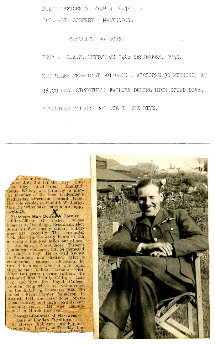 1. & 2. A brief history of one of the Bramham boys, a musician, who became a pilot in the R.A.F. and was killed in September 1942.