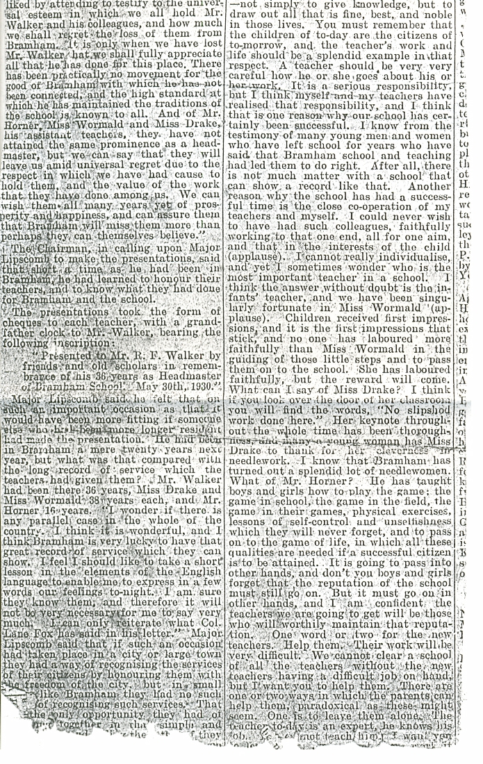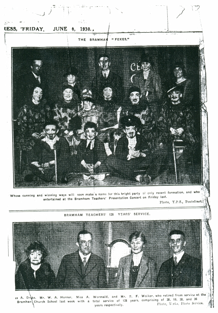 1. A press photo dated June 6 , 1930 showing the retirement of four teachers of Bramham church school after combined service totalling 128 years.