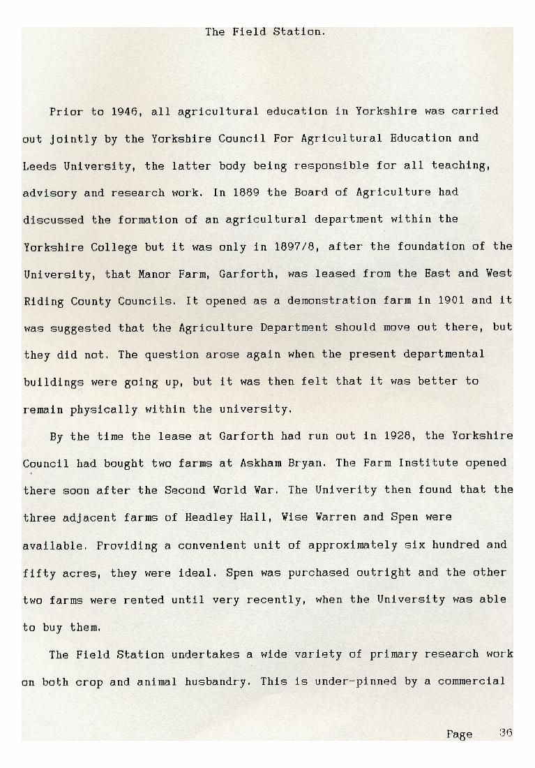 1. & 2. Relates how Leeds University acquired Headley Hall, Wise Warren and Spen for its agricultural work in the second half of the 20th century