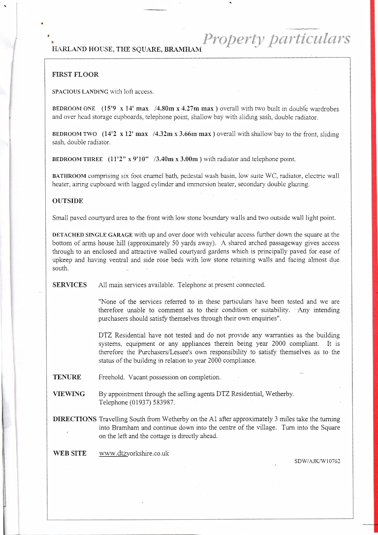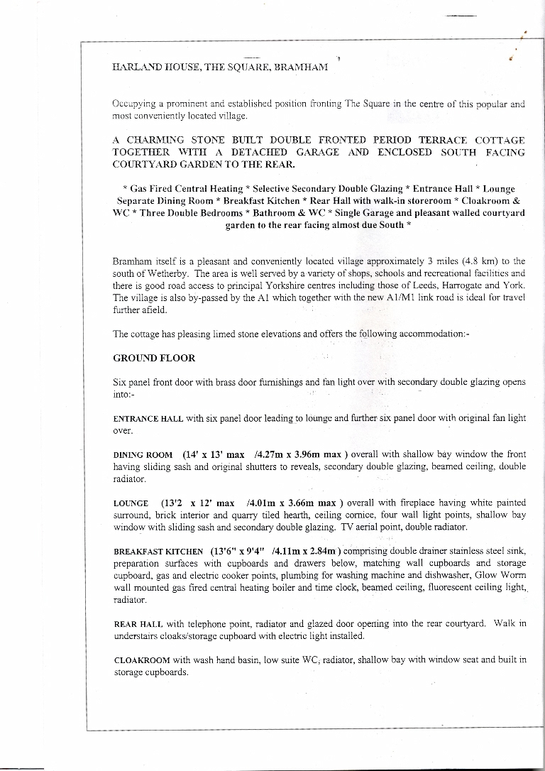 1. - 3. Sales brochure for a double fronted stone built 3-bedroom cottage with garage, priced at £159,995.