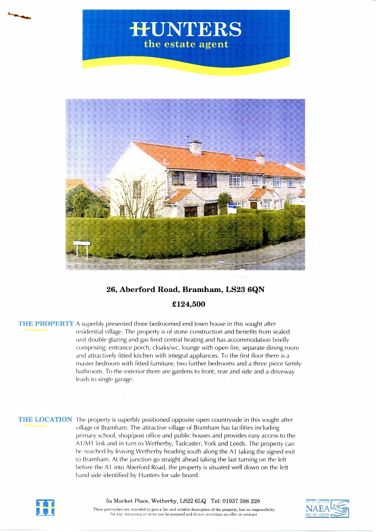 1. - 3. Sales brochure for a 3 bedroomed end town house with single garage offered at £124,500.