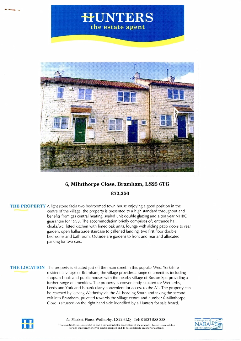 1. - 3. Sales brochure for a light stone facia 2- bedroom town house for £72,250.
