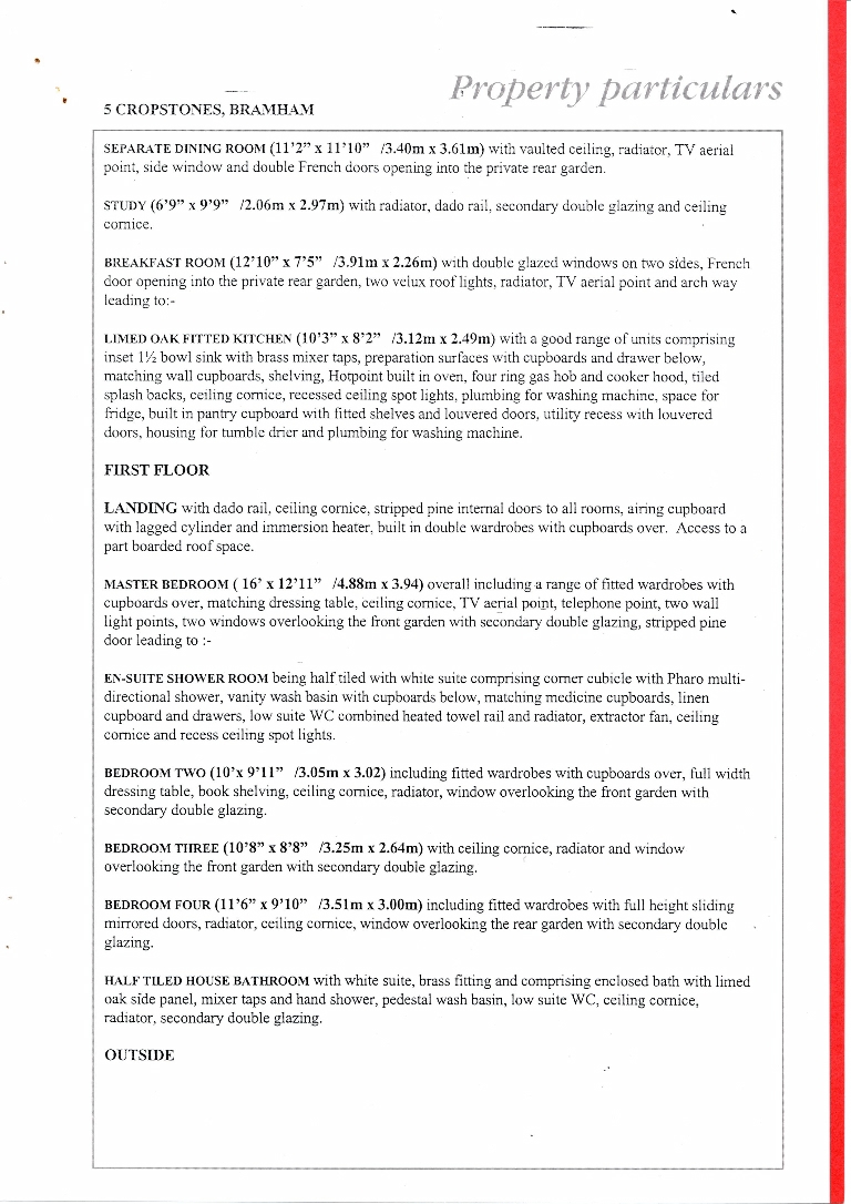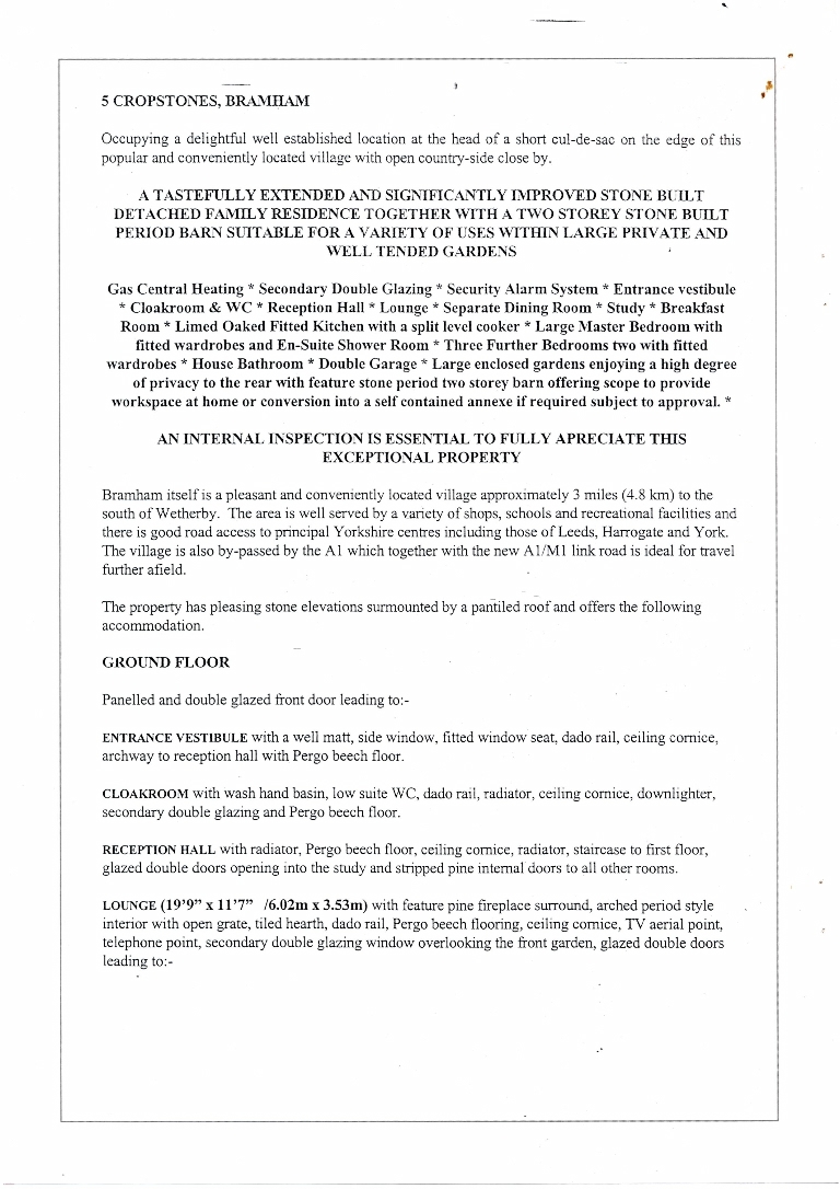 1. - 5. Sales brochure for a stone built detached 4 bedroomed house incorporating double garage, also with a stone period 2 storey barn providing scope for conversion into self contained annexe. Price £239,950.