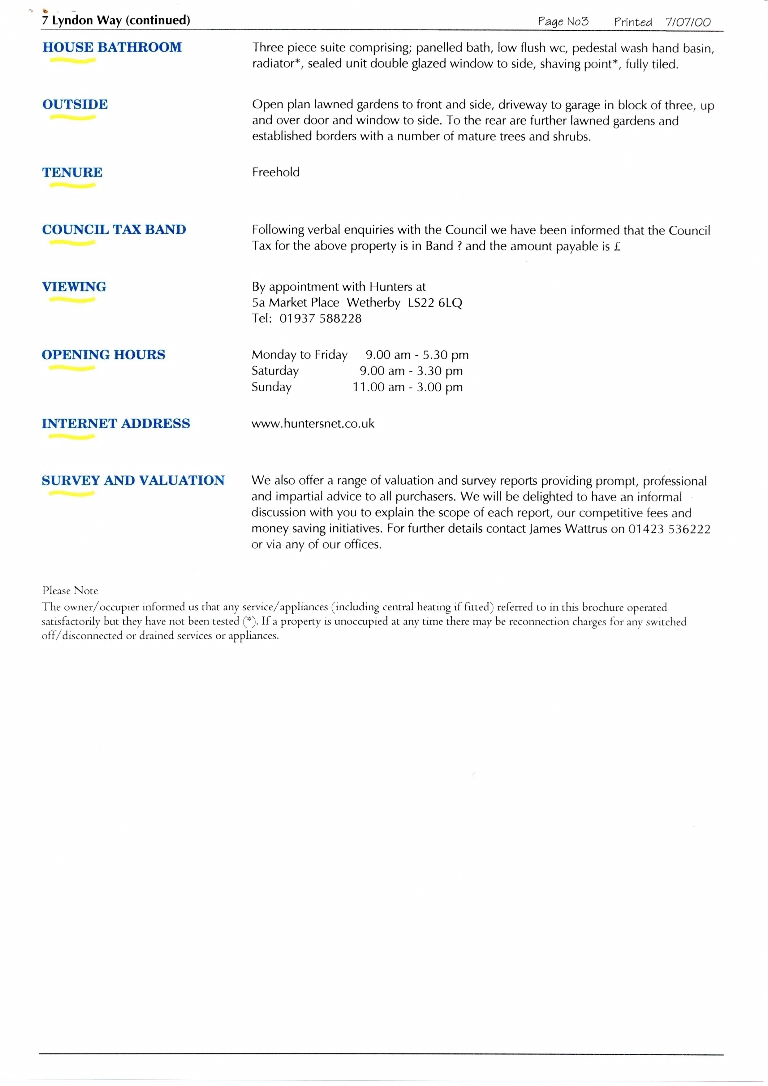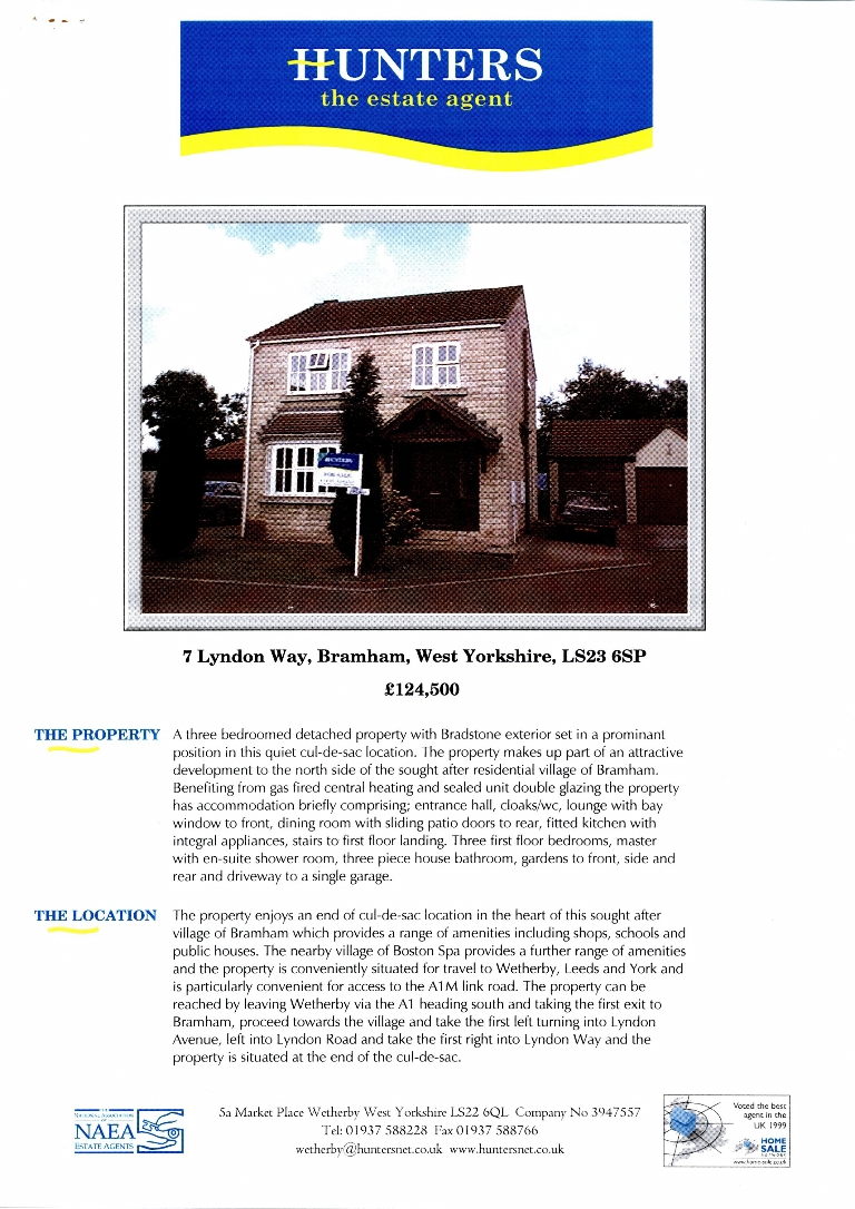 1. - 3. Sales brochure for a 3 bedroomed detached house with bradstone exterior having a single detached garage. Price £124,500.