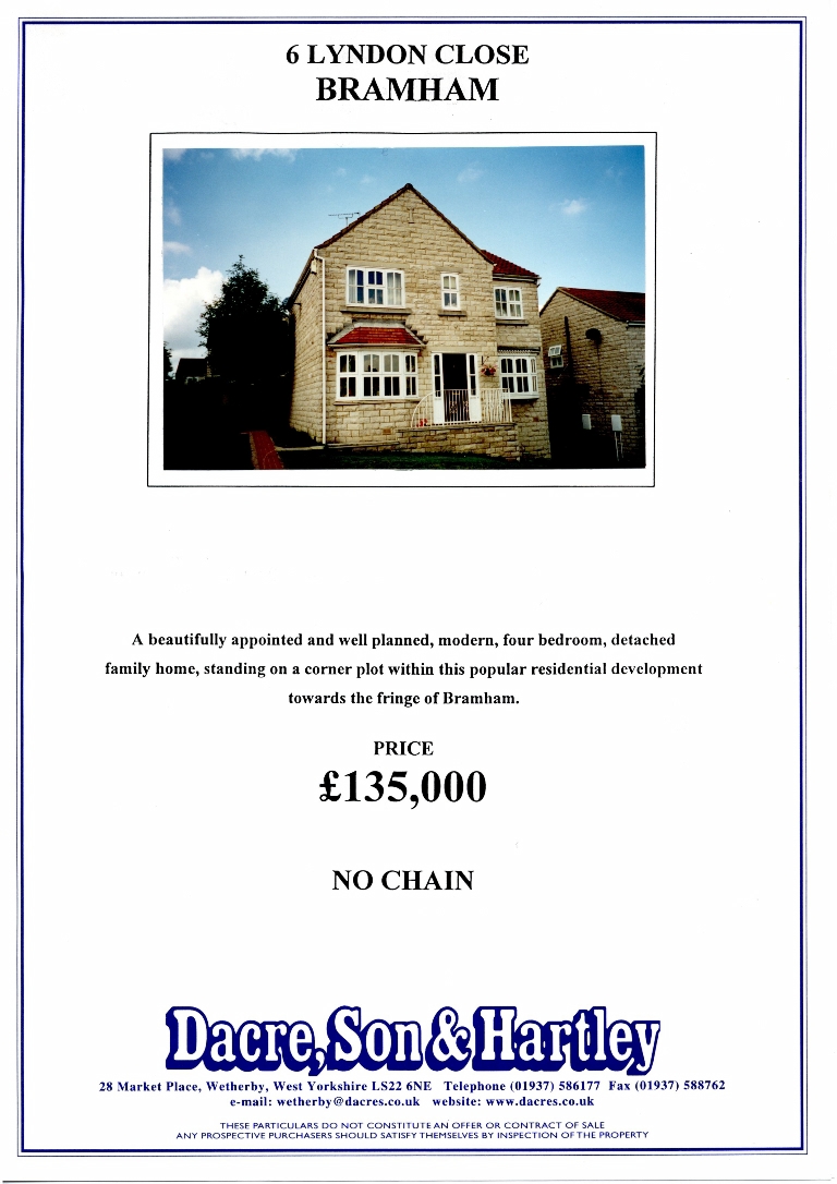 1. - 3. Sales brochure for a 4 bedroom detached house on a corner plot with a separate single garage. Price £135,000.