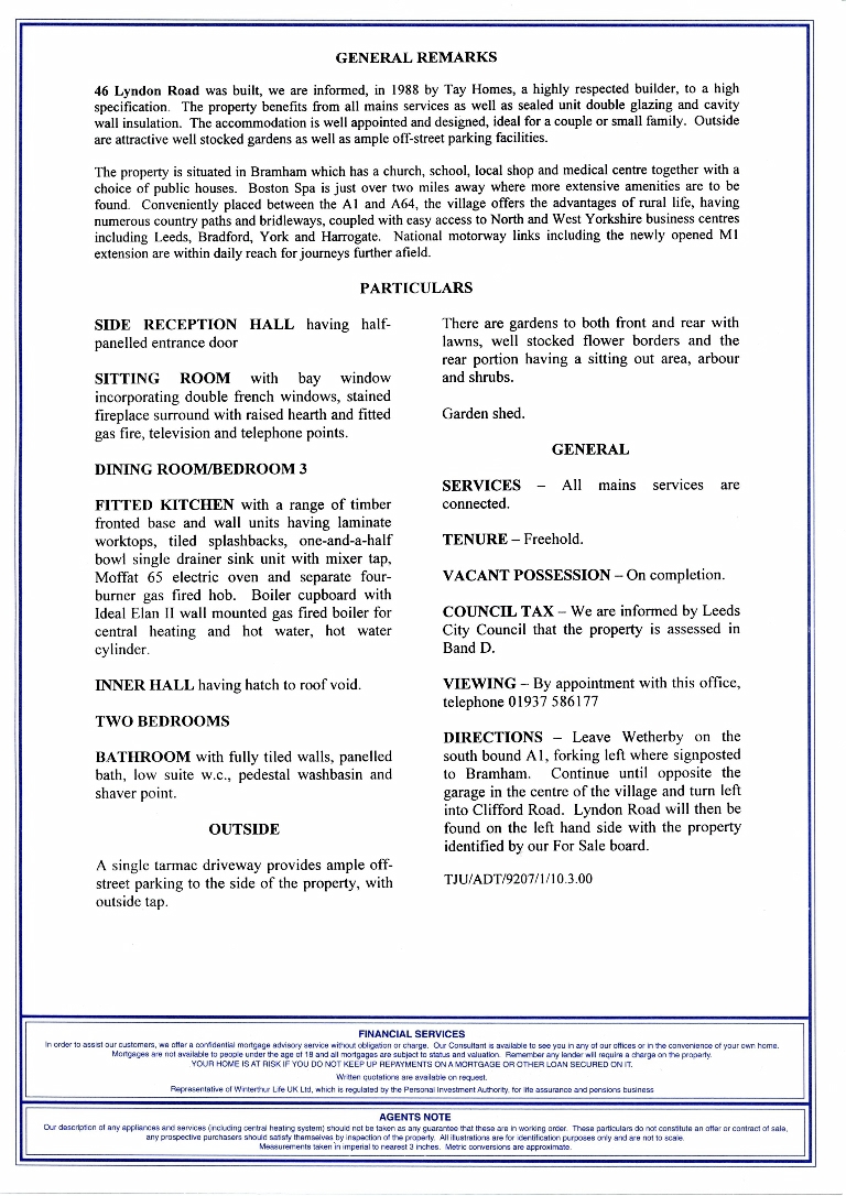 1. & 2. Sales leaflet for a two/three bedroom bungalow at £86,500.
