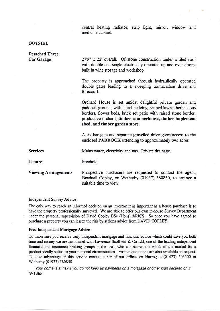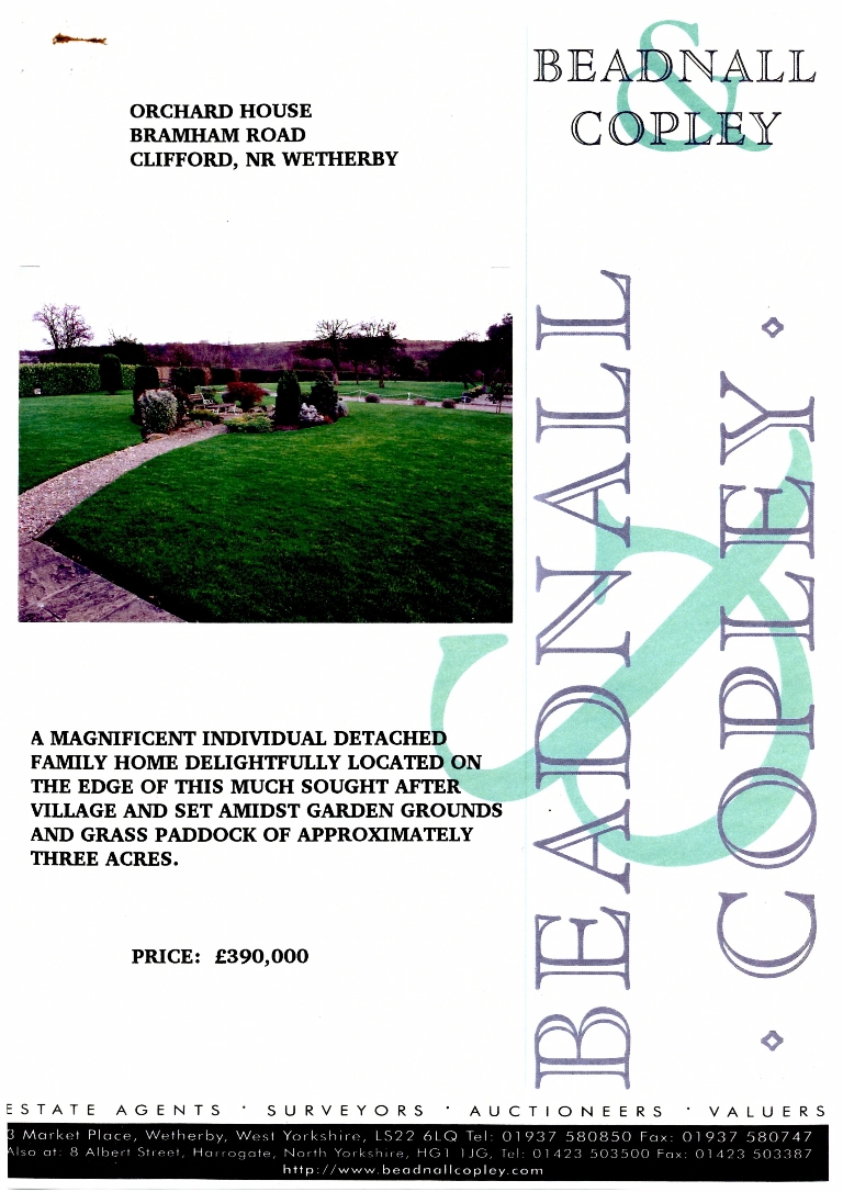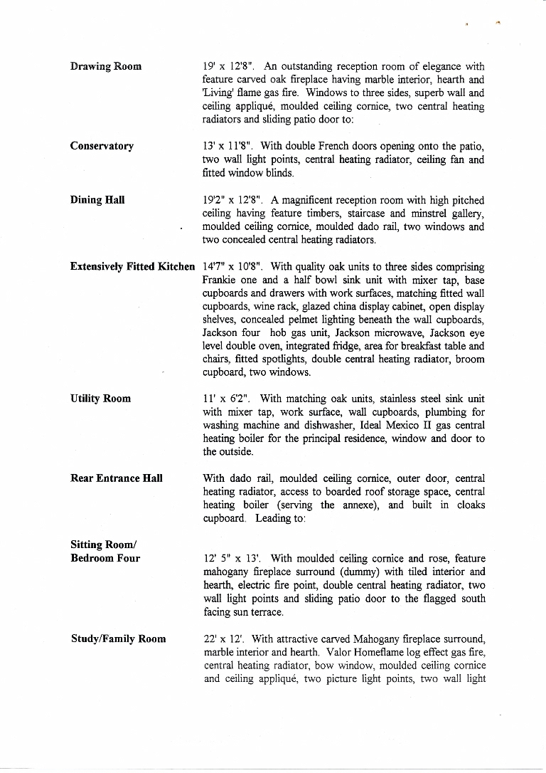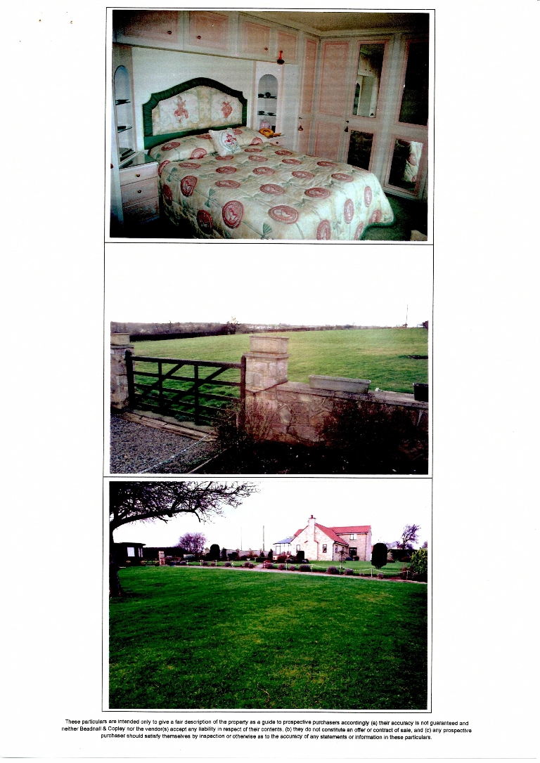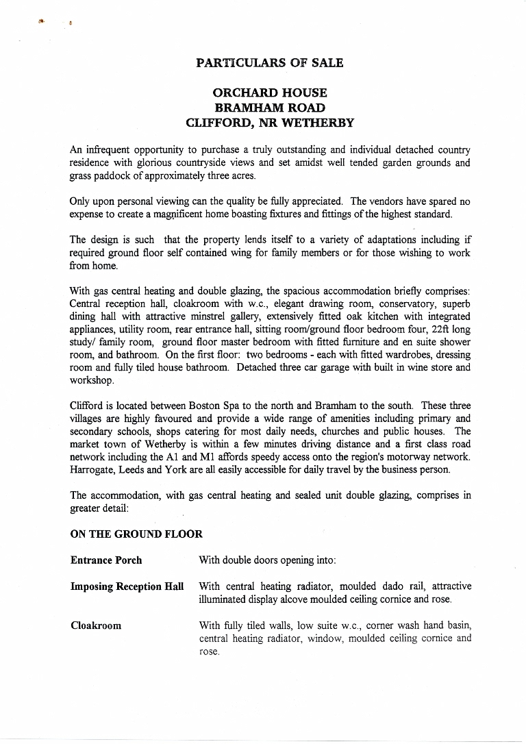 1. - 8. Sales brochure for an individual 4 bedroomed detached house with a 3-car garage, set in good garden grounds plus a 3 acre grass paddock. Priced at £390,000.