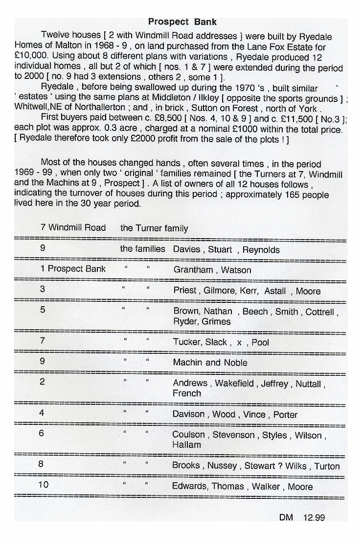 1. The origins of the Prospect Bank houses and the names of the families that lived in them in the period 1969 - 1999.