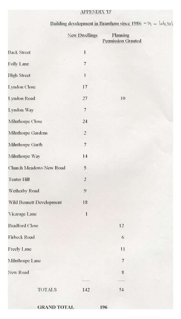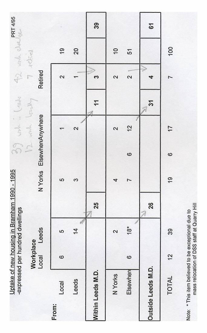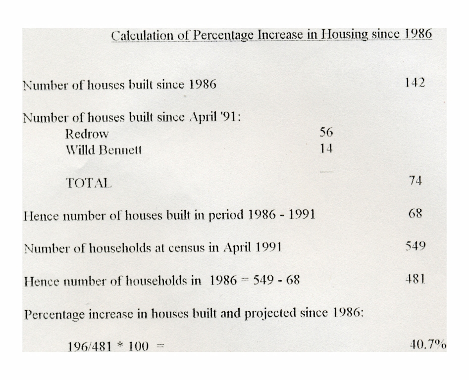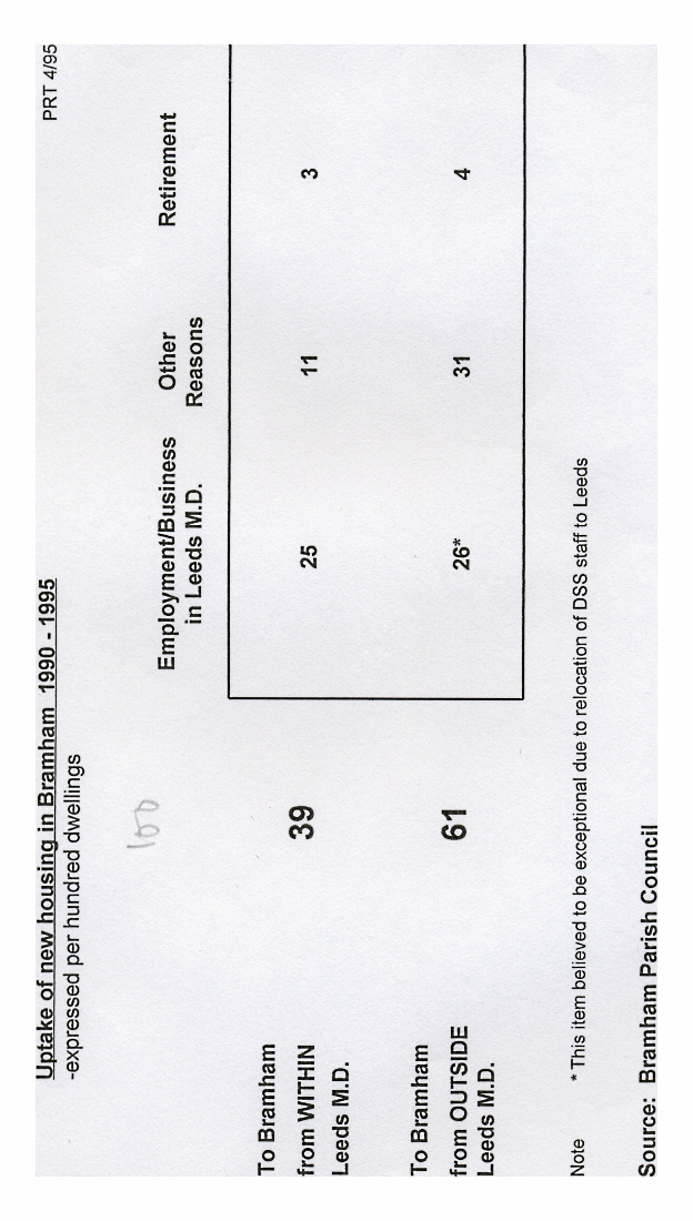 1. - 6. A survey undertaken by the Parish Council to determine the origins of the 241 new residents settling in the village in the period 1990 -95 with their preferred locations for shopping and leisure. Additional statistics are include on building development since 1986