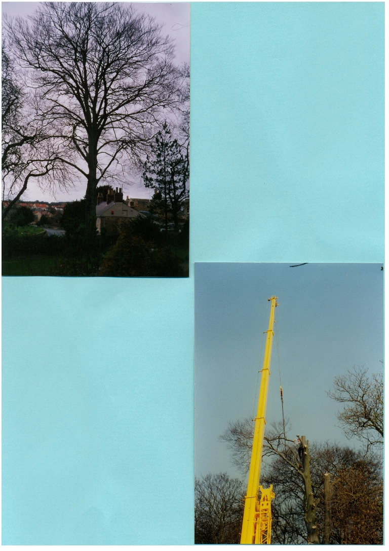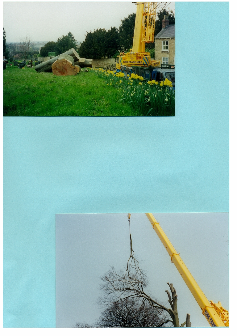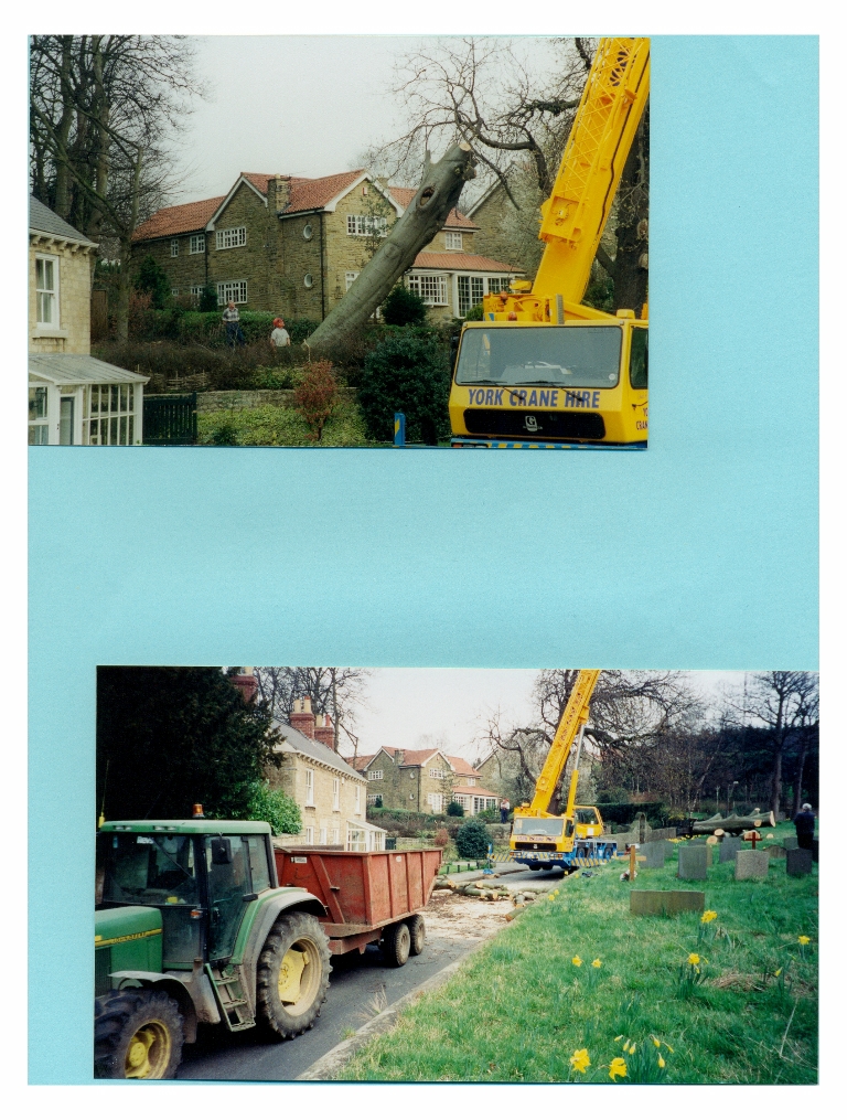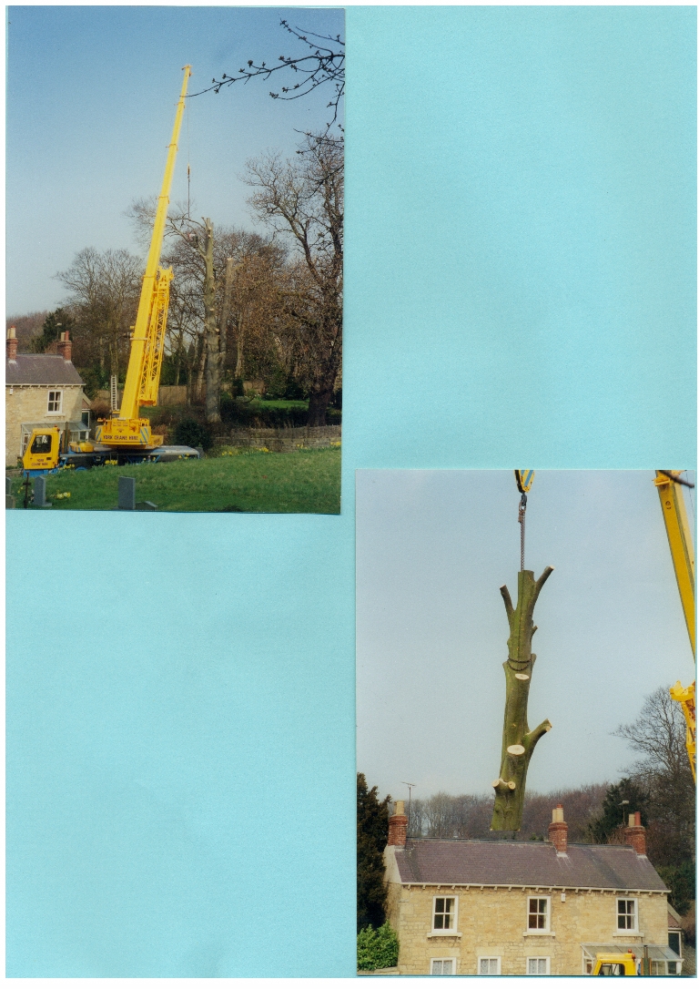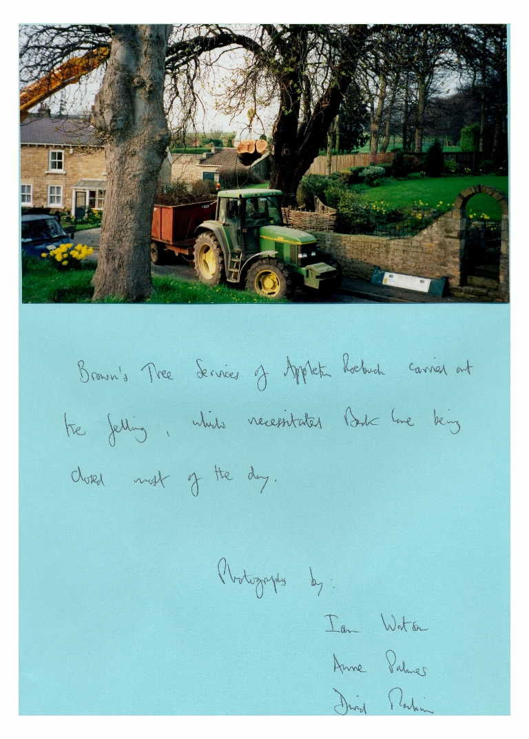 1. - 8. An eight page pictorial record of the removal of a diseased Beech tree in March 2000 from the strip of Old Hall land on Back Lane that lies between the properties of Church View and 9 Prospect Bank.