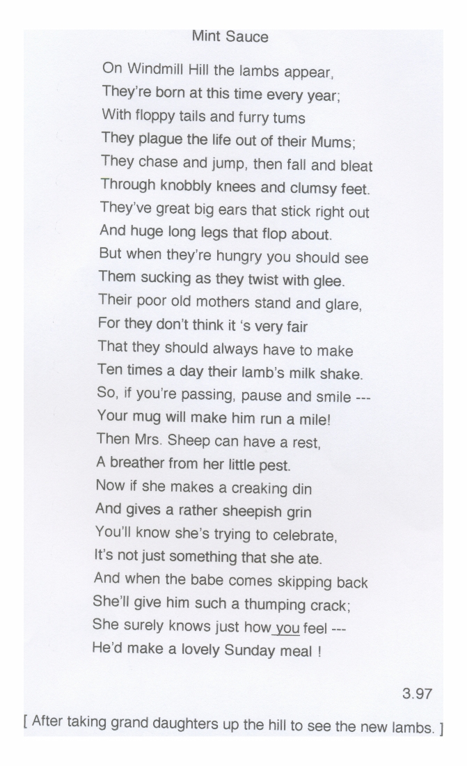 1. A poem dedicated to the newborn lambs enjoying life on Windmill Hill dated