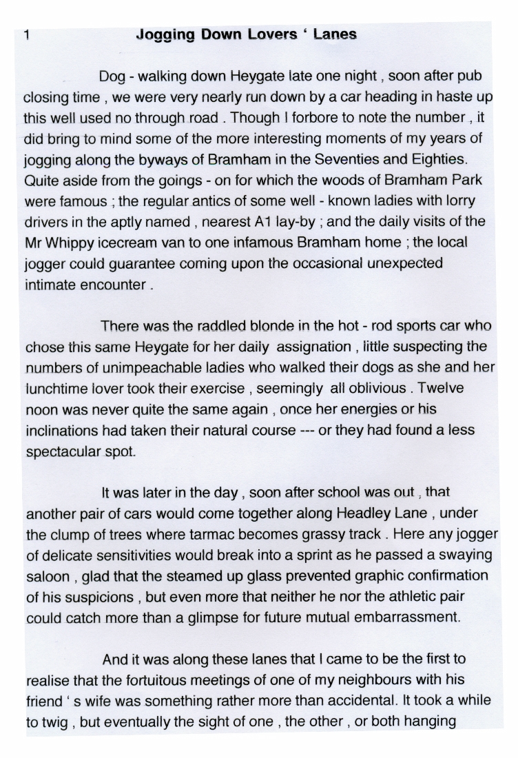 1. & 2. A short history of amorous 20th century encounters in Heygate Lane, Headley Lane and Rhodes Hill Lane.