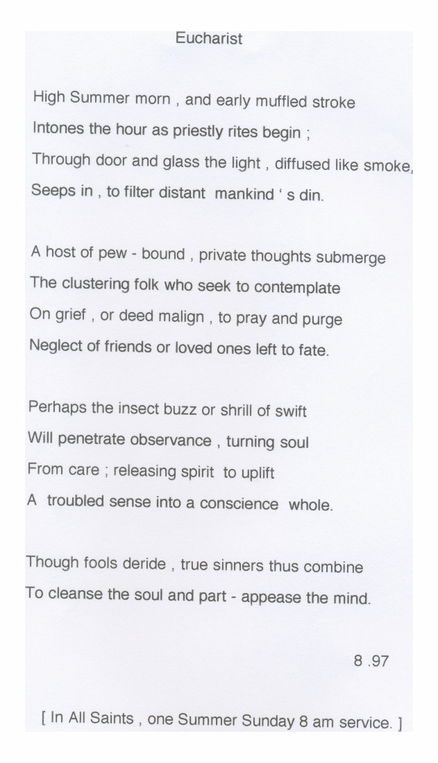 1. Thoughts on a summer early Sunday morning Eucharist service.