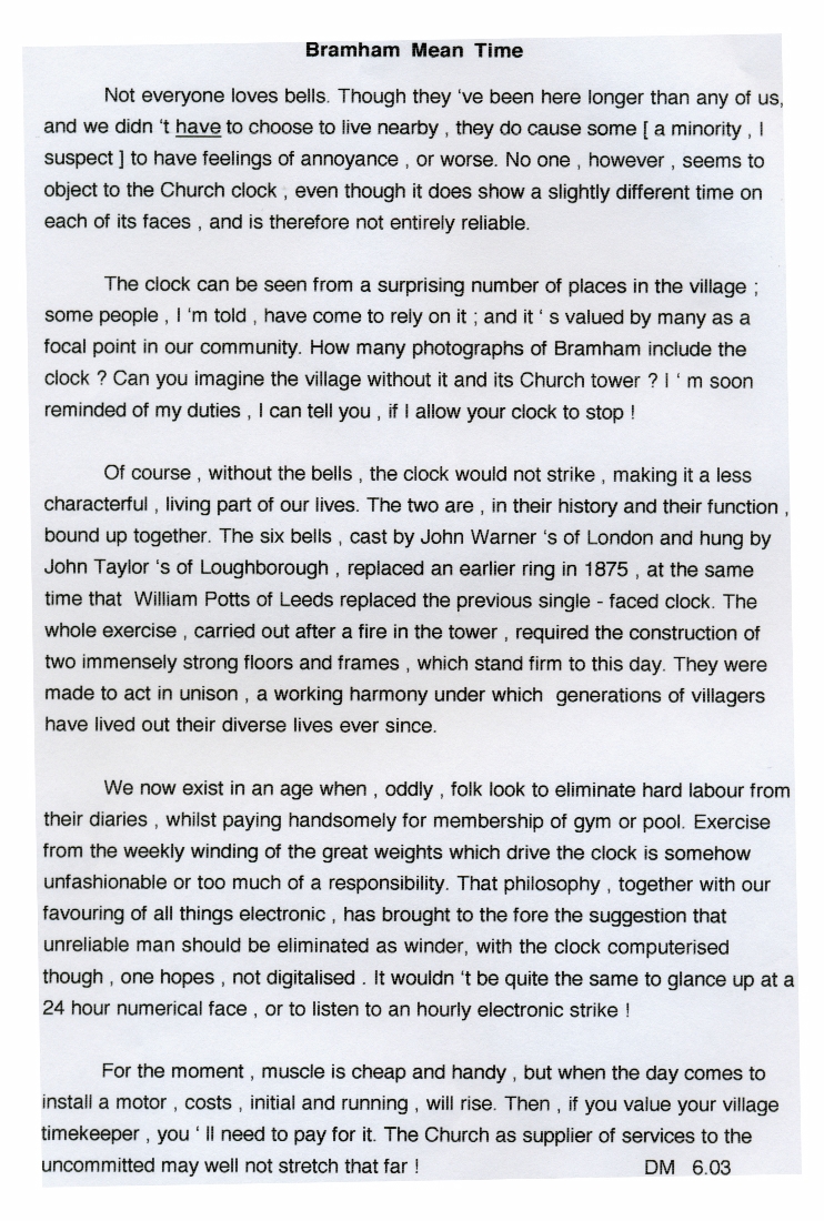 1. More thoughts on the church clock and the bells, dated June 2003.