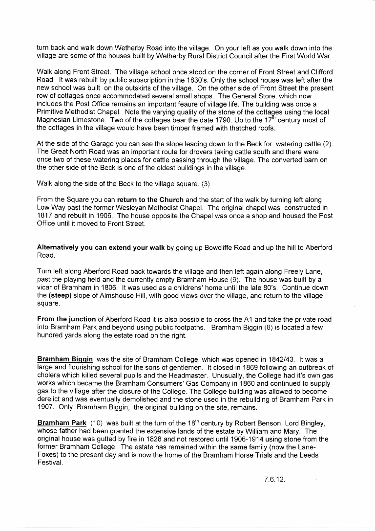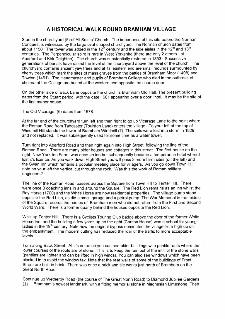 1. 2. & 3. A walk round Bramham taking in some the historic features of the village.