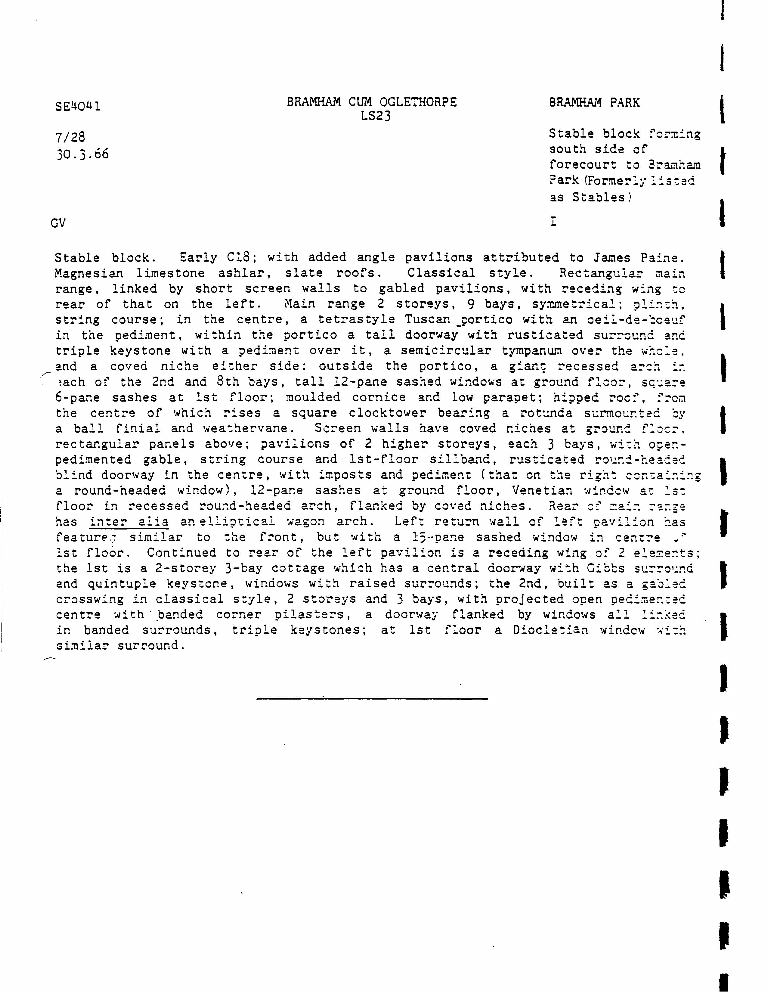 5. Description, dated 30-3-1966, of Stable Block forming south side of forecourt to Bramham Park.