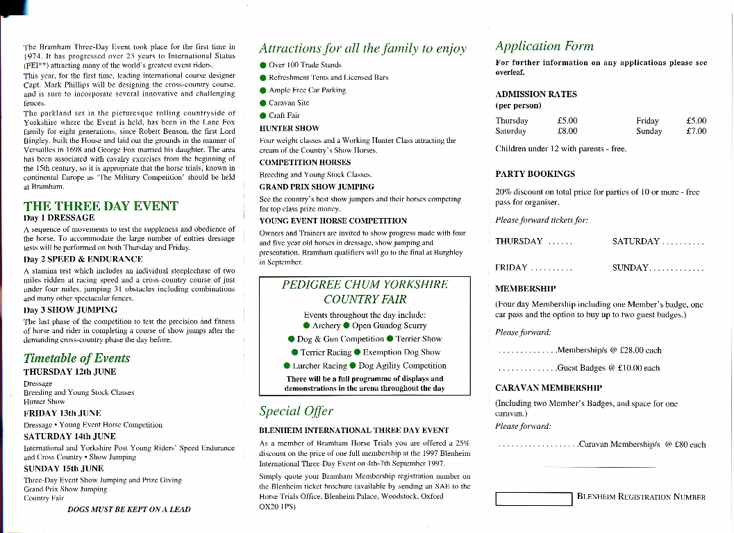1. & 2. Bramham International Horse Trials brochure/ticket application form for 12th - 15th June 1997.