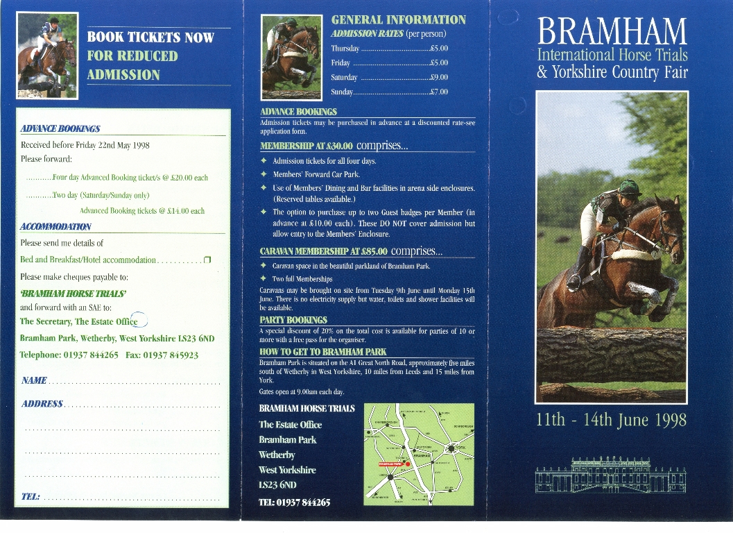 5. & 6. Bramham International Horse Trials brochure/ticket application form for 11th - 14th June 1998.