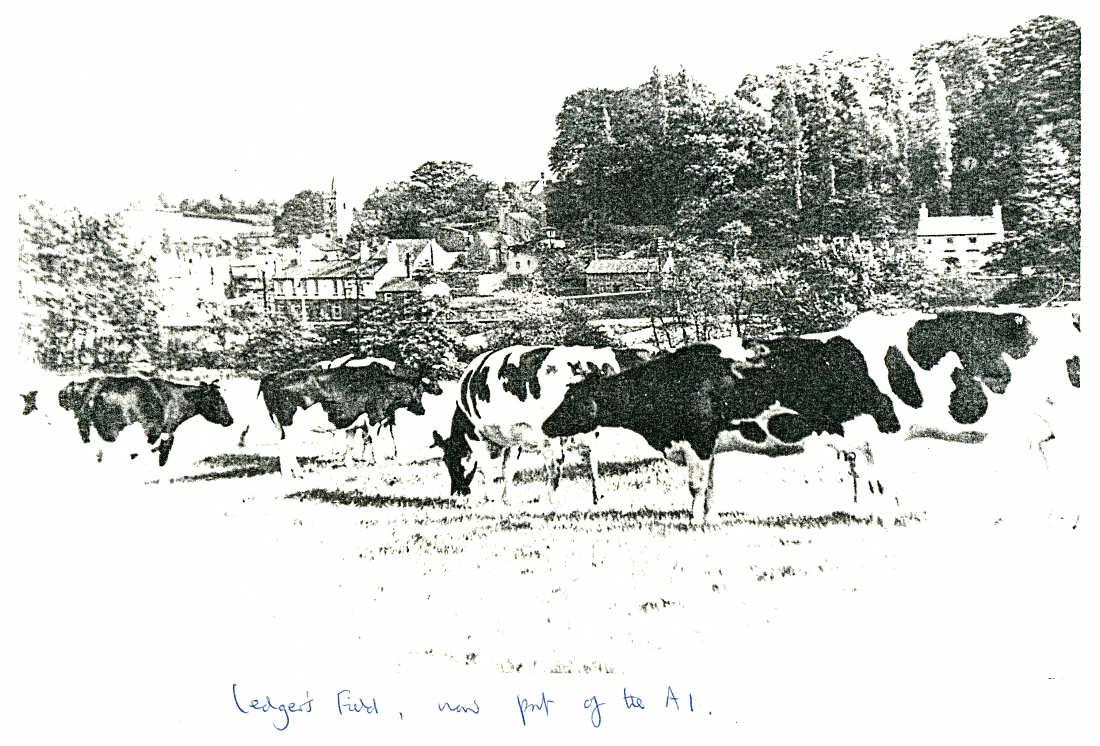 1. A black and white view of Ledgers Field looking east towards Bowcliffe Road and the Bay Horse pub before the A1 was diverted through the field.