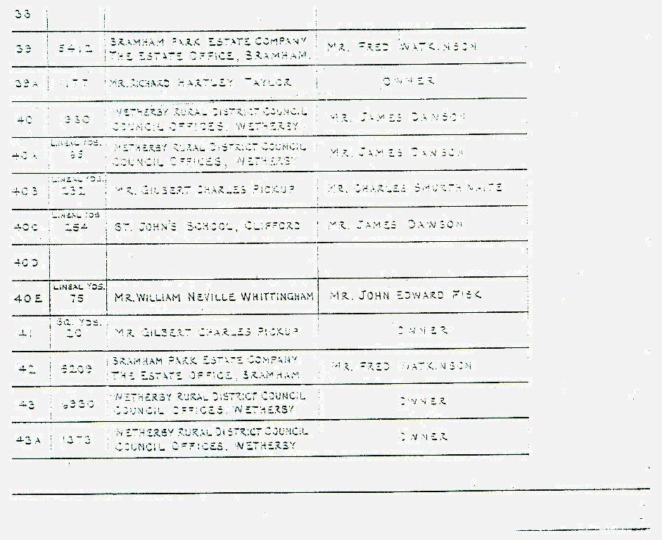 1. - 8. Plan of the A1 before rerouting with the names of the owners and occupiers of properties adjacent to the road.