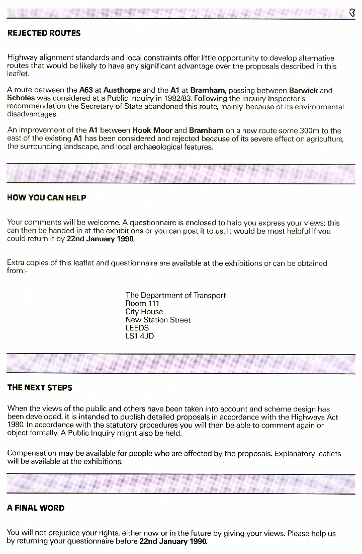 2. & 3. Write ups on 'The Problem', The Proposal', 'The Effects of the New Road', 'Restricted Routes', 'How You Can Help', 'The Next Steps and 'Final Word'.