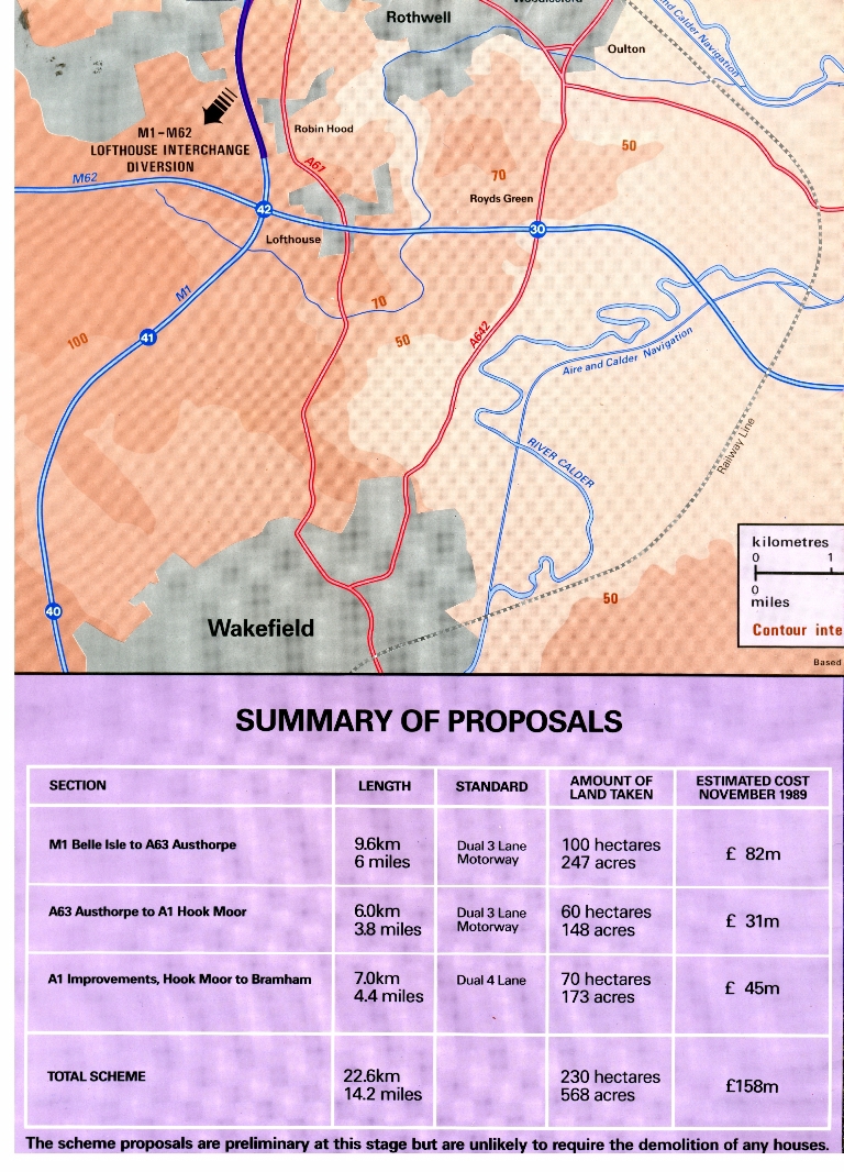 1. Outer cover of the Dept. of Transport leaflet on the M1 - A1 Link between Belle Isle and Hook Moor plus the A1 improvements Hook Moor to Bramham.