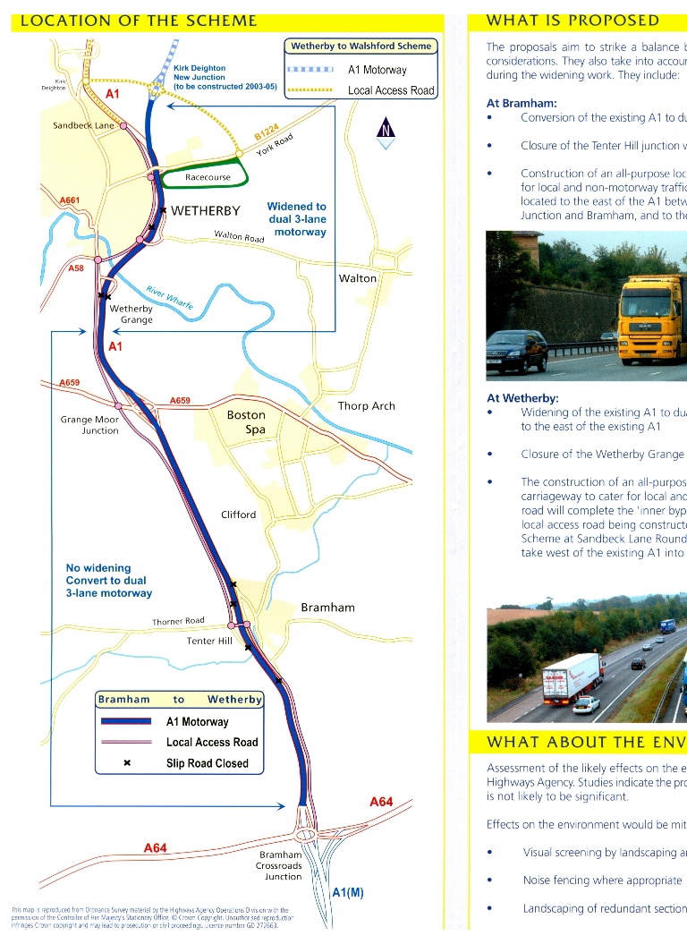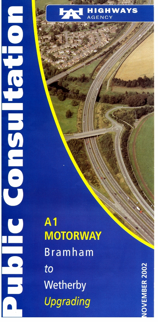 1. - 6. A six page consultation brochure produced by the Highways Agency in which the 'Introduction' is followed by a map showing the 'Location of the Scheme' followed by 'What is Proposed', 'What about the Environment', 'Widening Method at Wetherby', 'Cross Sections', 'Your Views', Exhibitions', 'Further Information' and 'What happens Next'.