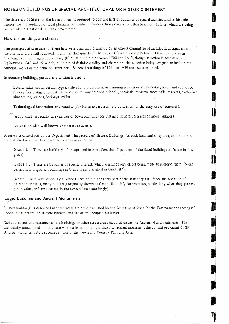 1. Notes on the selection buildings of historic or scientific interest by The Secretary of State for the Environment.