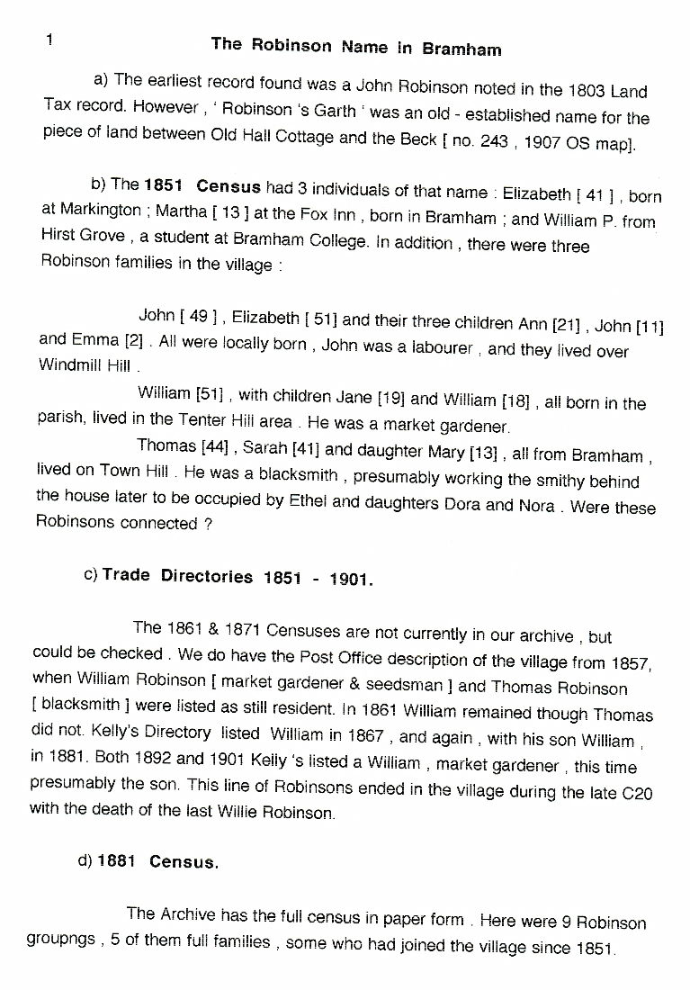 1. The Robinson name was listed on early maps and in subsequent censuses of 1803,1851 and 1881.