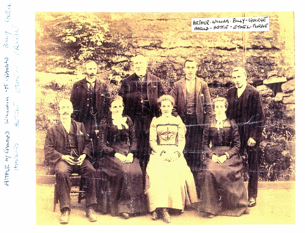 5. Photograph showing a much older William with Arthur, Billy, Harold, Hettie (Henrietta), Ethel and Florrie - probably taken around 1900. No sign of Martha.