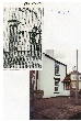 2. An early press photo of the pump together with a view showing the site at about the beginning of the 21st century when some residents wished a replica pump to be restored.
