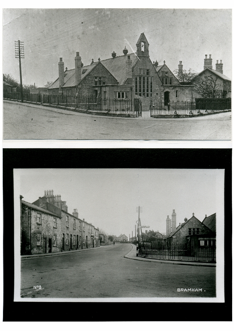 1. A view of the front of the old school and a further view looking up Front Street with part of the school visible on the right.