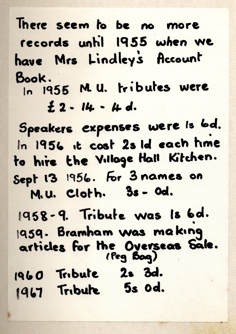 6. Some details of Mothers Union expenses in the years 1955 to 1967.
