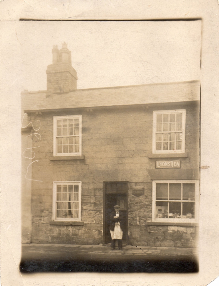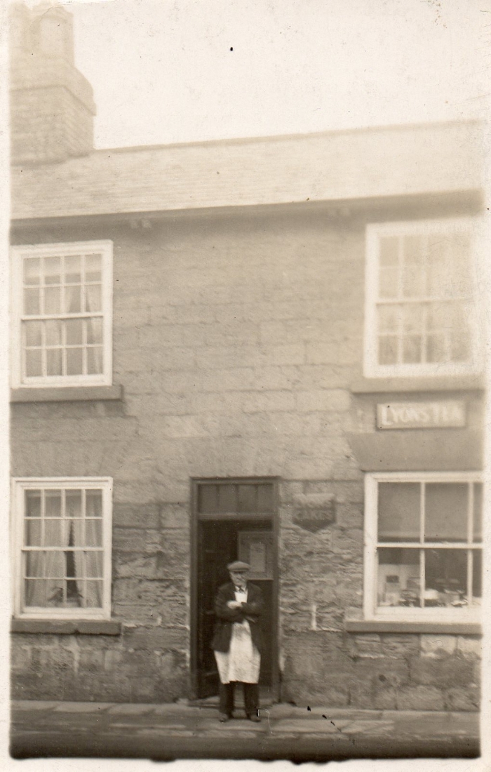 9. & 10. Great Grandfather Edward Yates standing in the doorway of the shop in Bramham circa 1928, shop now part of the Red Lion pub.