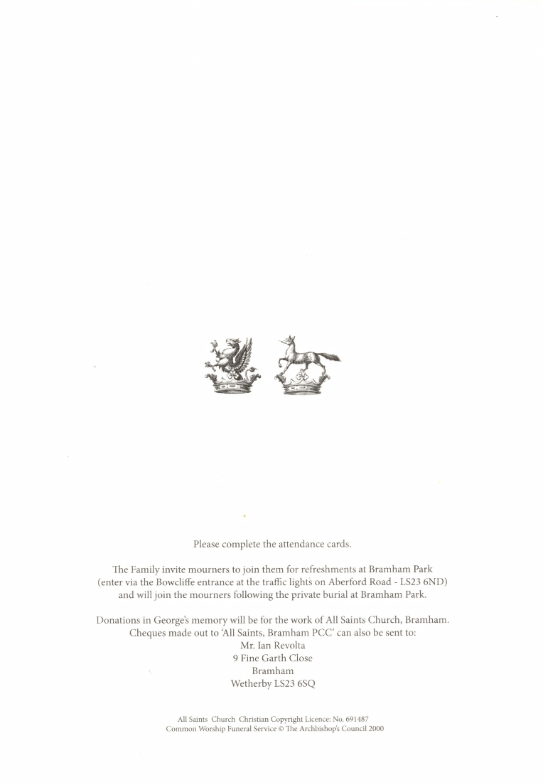 As Patron of the Benefices of Bramham and Clifford George took an active interest in the work of our parishes but never interfered. Even prior to my arrival in 2000 he wrote a long letter to me which explained some of his own perspectives on church and parish life today.