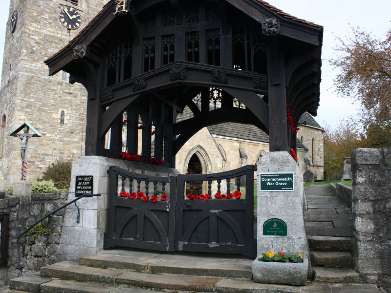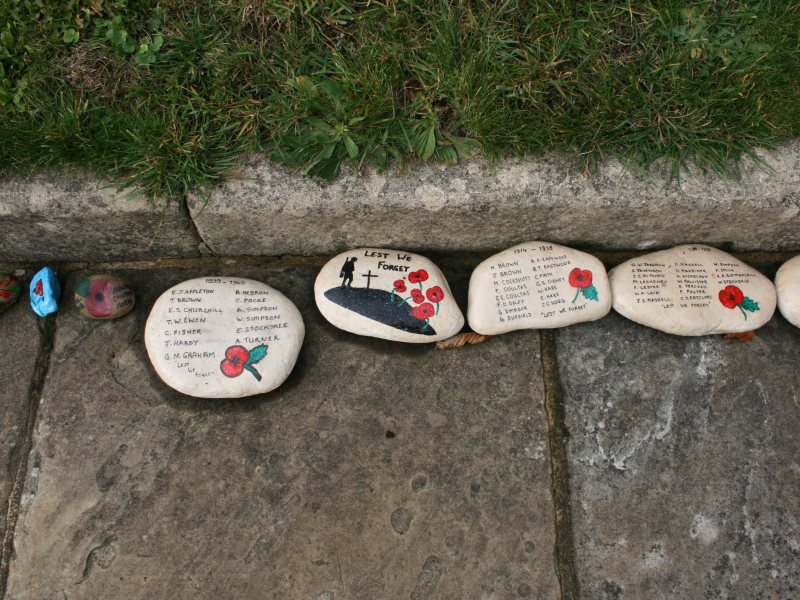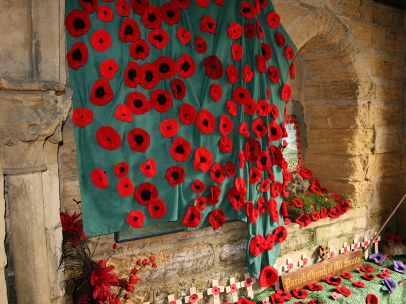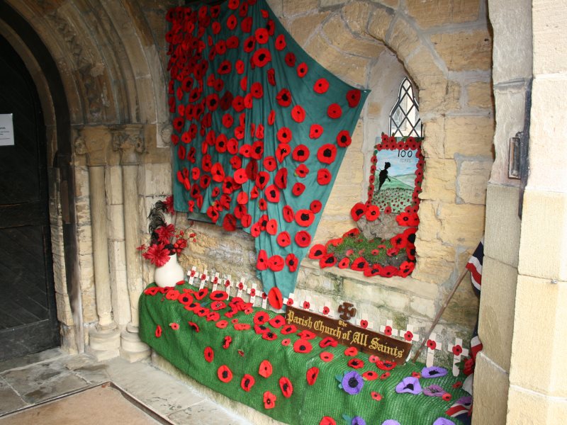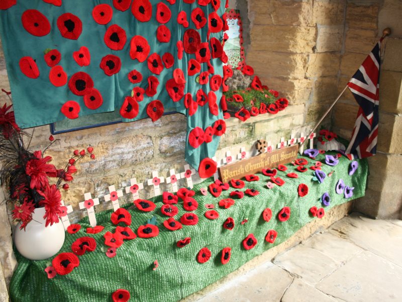 1. - 27. All Saints' Church decorated for Armistice Day - The congregation walks down to the village square for the second service around the War Memorial.