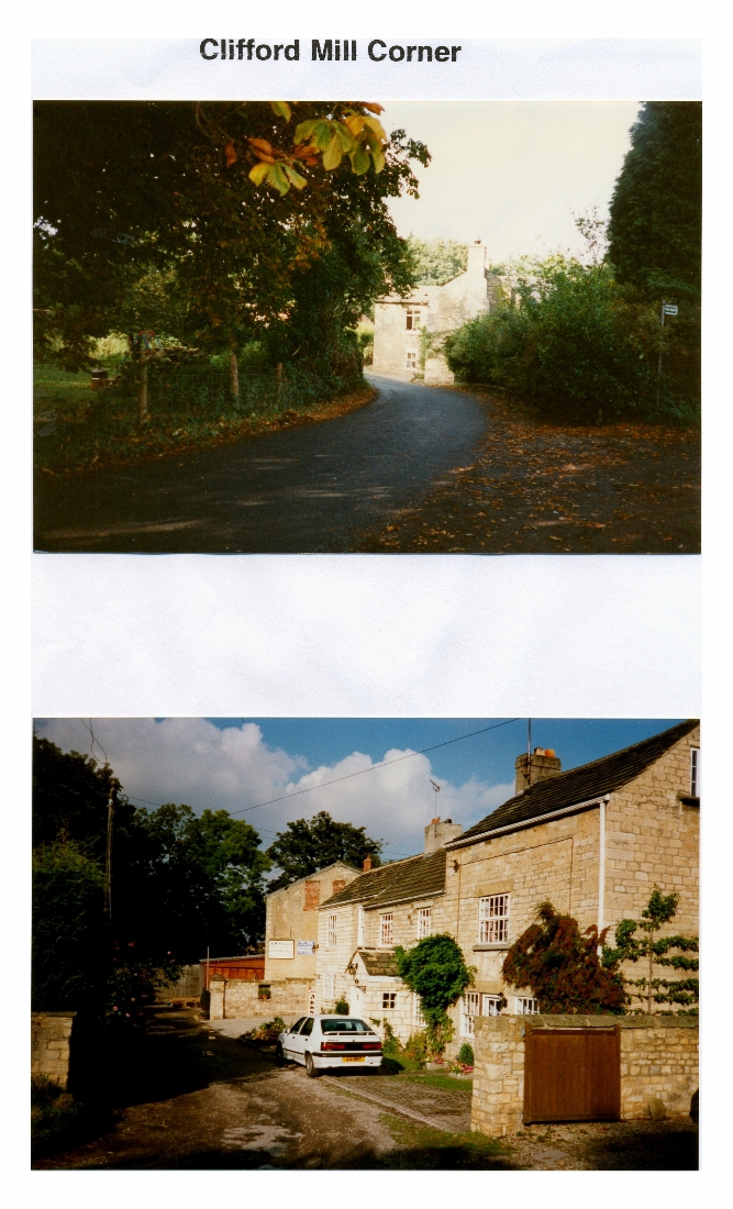 1. The approach to Clifford from Windmill Road showing Mill Pond Cottage at the start of Old Mill Lane together with a view of the cottages on the cul de sac adjacent to Mill Pond Cottage.