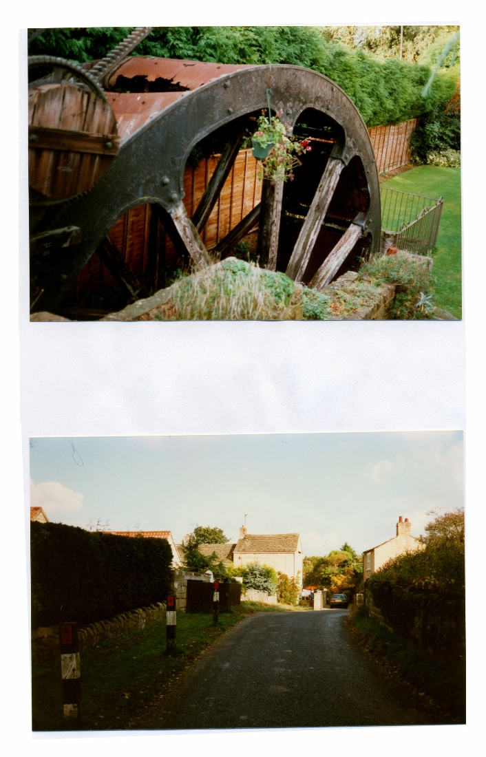 2. The old mill wheel next to the bridge over The Beck together with a view over the bridge looking back towards the entry to Mill Pond Cottage at about the year 2000.
