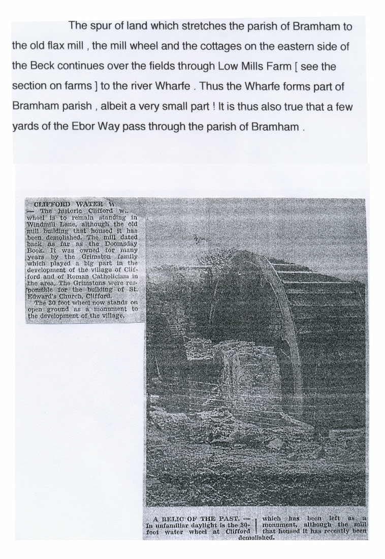 3. A brief paragraph explaining that items 1 & 2 are part of Bramham parish together with a press cutting about the mill wheel
