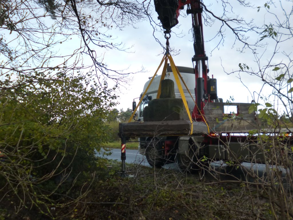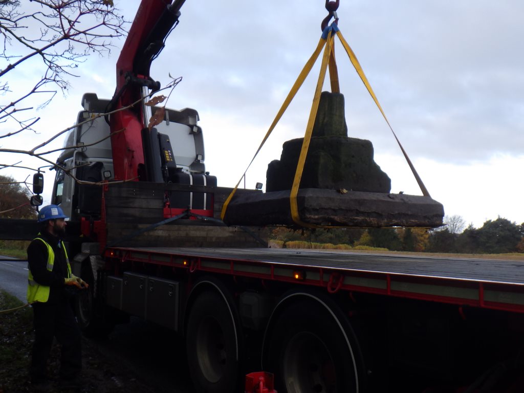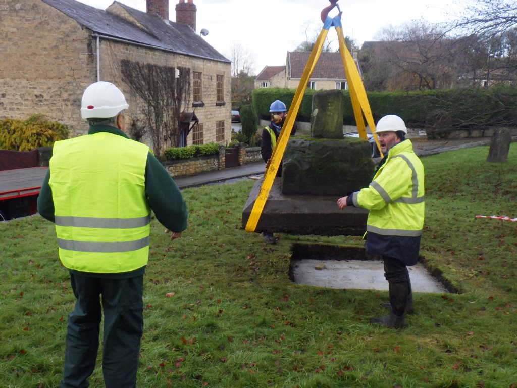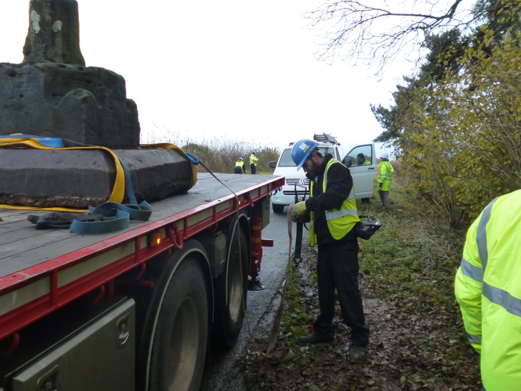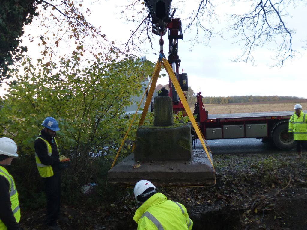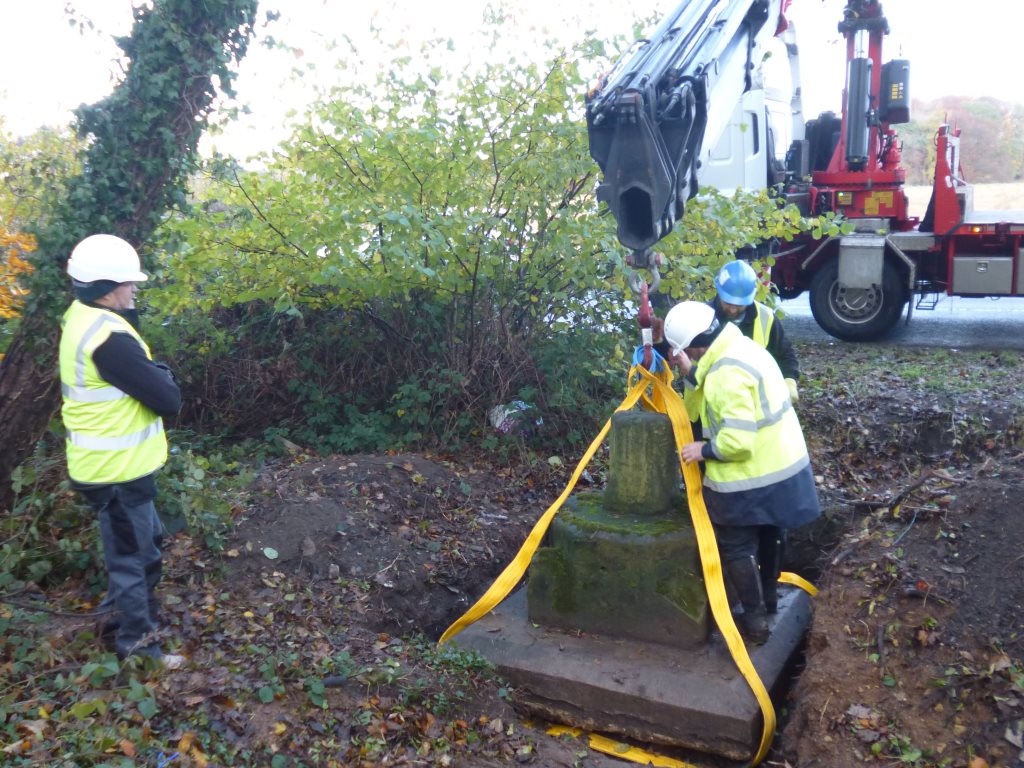 The operation to remove the Cross from Black Wood commenced. A condition of the granting of Planning Permission from LCC and Historic England was that the project be supervised by a qualified Archaeologist and that all care should be taken in handling the Cross. Once again Katie Keefe from York Osteoarchaeology Ltd supervised.