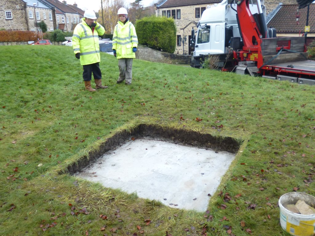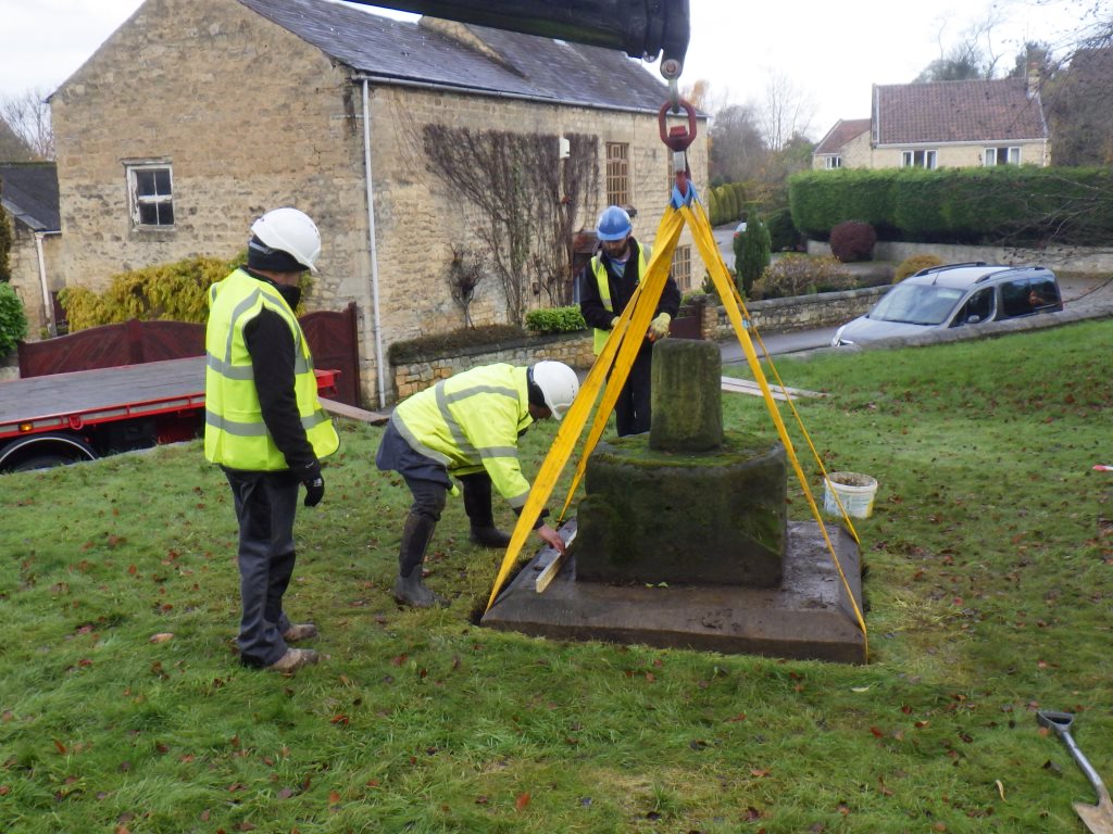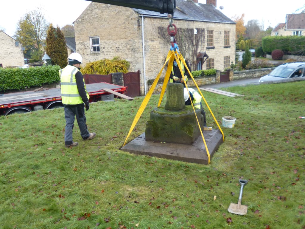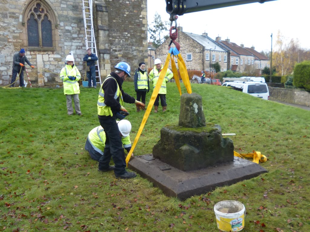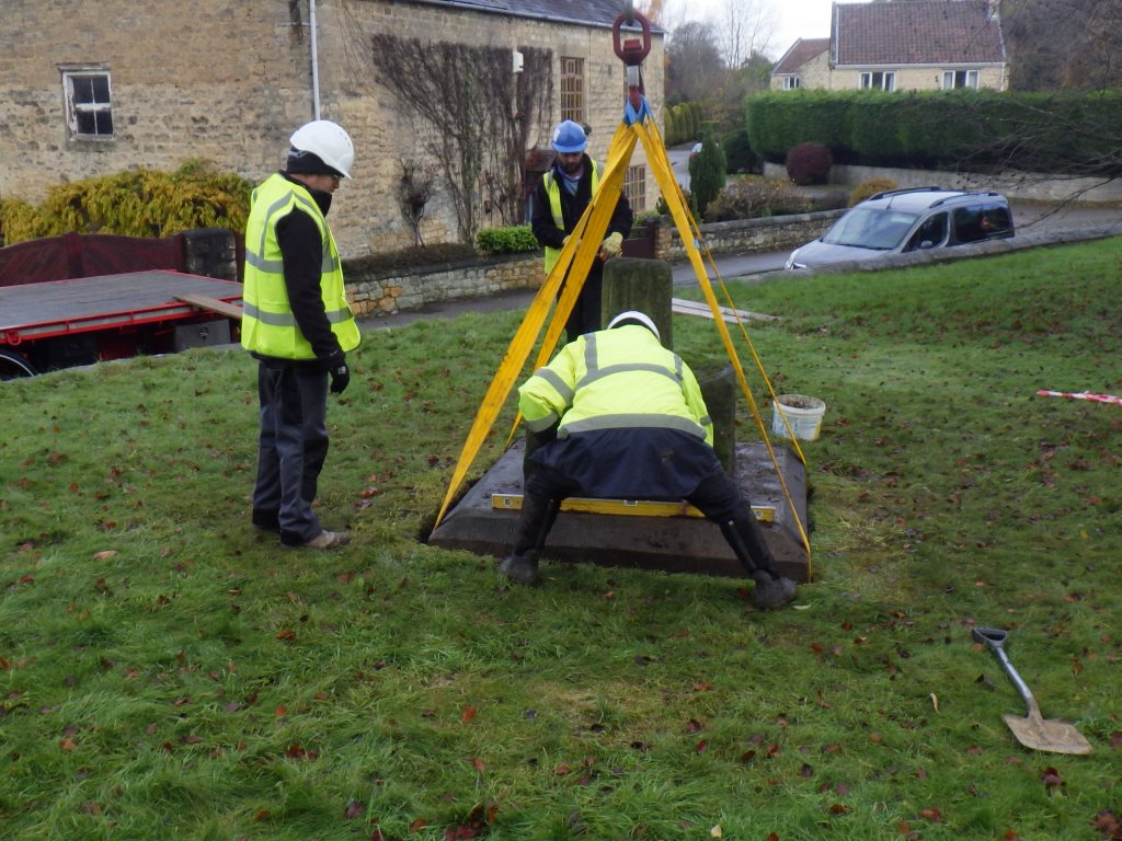 The Cross appeared to be grouted to the base and would be difficult to separate without damaging the fabric of the Cross. However it was determined that the base could act as a carrier for the Cross and there would be no need to separate the two. The excavations around the base allowed for the insertion of lifting slings on two sides and this methodology was to be utilised for the lifting.